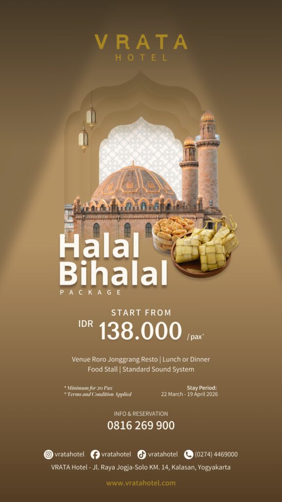 VRATA Hotel sebagai hotel pilihan yang tepat di Yogya bagian timur, menawarkan berbagai pilihan paket Halal Bihalal dengan fasilitas dan keuntungan yang menarik mulai dari venue di Roro Jonggrang Restaurant, pilihan makan siang atau makan malam, food stall, dan standard sound system , tersedia hingga 19 April 2026.